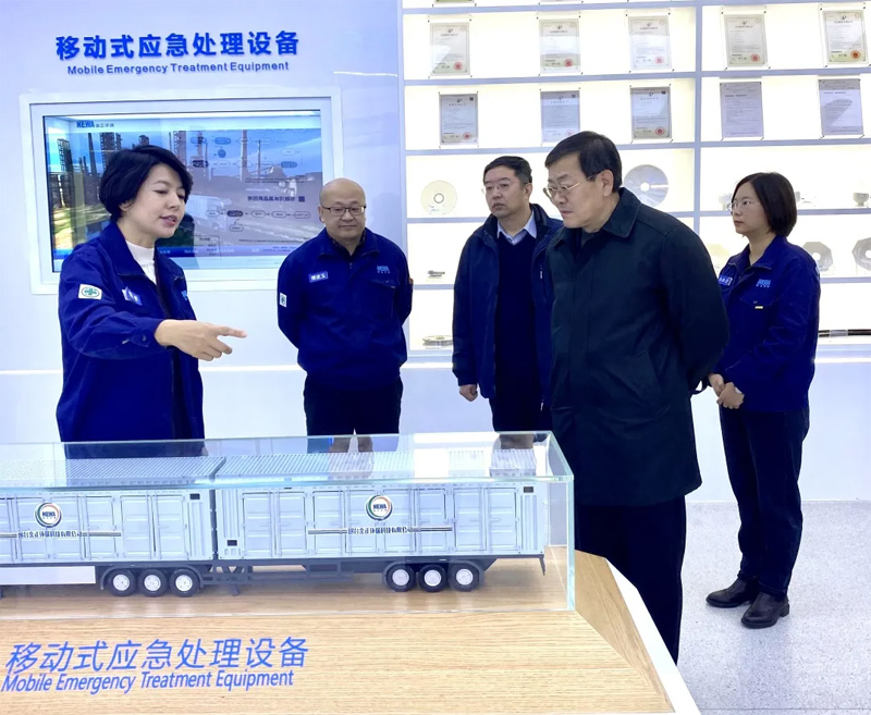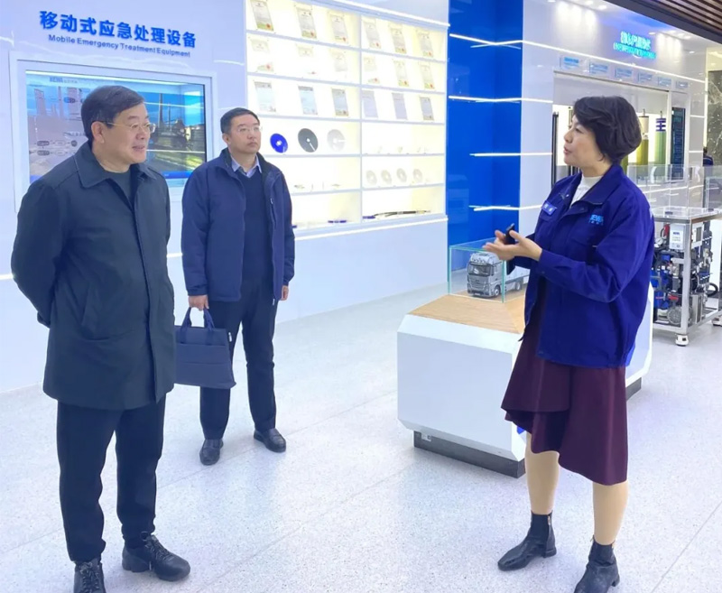 孫樹福局長一行先后參觀了公司展廳、全自動化生產線、設備裝配車間和大數據中心等,隨后召開座談會,詳細了解金正環保的核心產品、核心技術以及生產過程中員工安全防護、安全培訓等情況,并重點詢問了公司在應急處理設備上取得的新成果。
