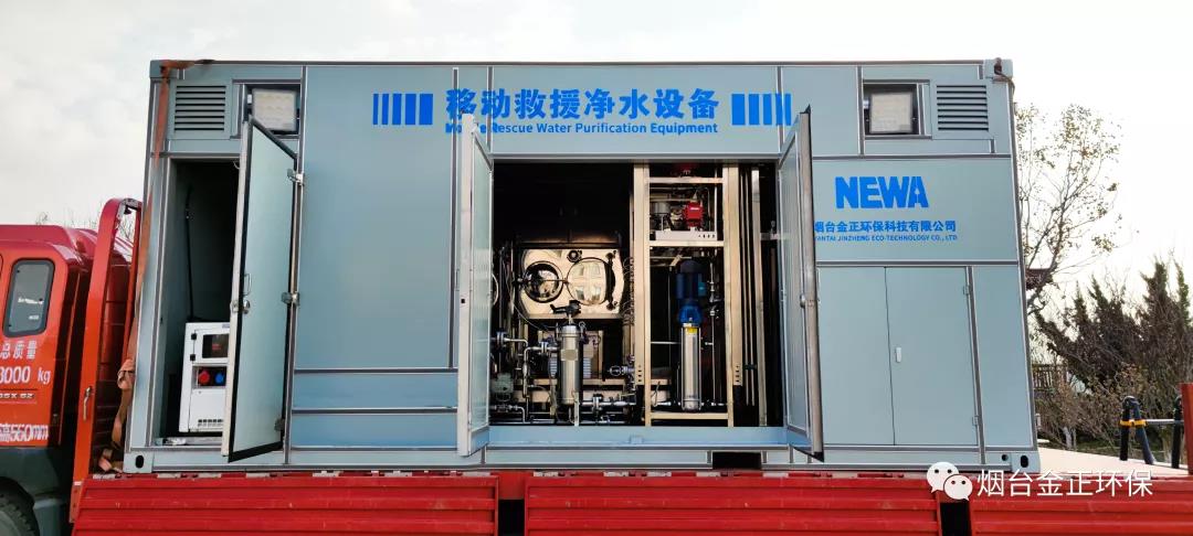 煙臺金正環保創新研發的移動救援凈水設備歷經一年多的技術攻堅,不斷優化設計,改進技術工藝,反復在極端水質中進行測試、驗證,從設計上確保系統在各種極端進水條件下的運行穩定性,產水各類指標均可優于設計值。移動救援凈水設備采用車載式,方便移動,自備發電機和動力泵,無需外接電源。廣泛應用于地震、洪水等自然災害臨時供水需求,能夠對江河湖塘